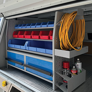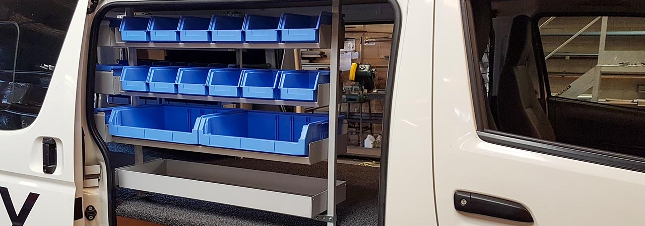 Lamson Storage offers an extensive range of storage solutions – open-front storage bins, vehicle shelving systems and large drawers for tradespeople utes.